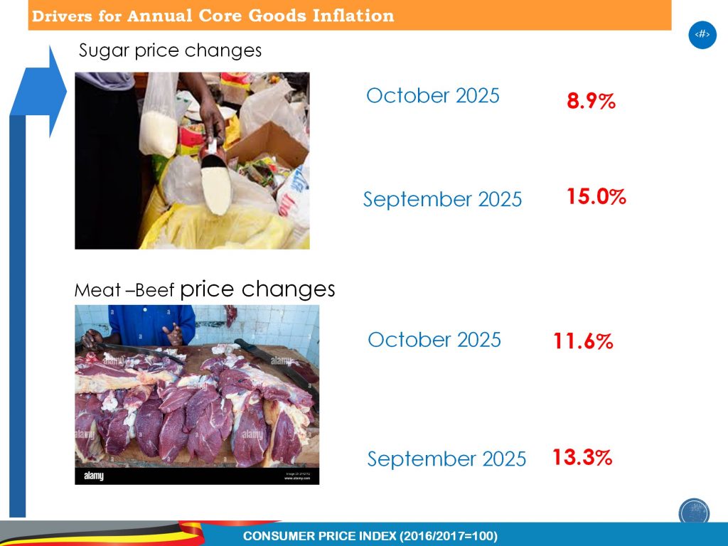 The annual core goods inflation for October 2025 is registered at 2.6% compared to 3.0% recorded in September 2025. The annual services inflation is recorded at 4.5% while 5.1% was recorded for September. This was influenced by a drop in prices for sugar, meat & accomodation.