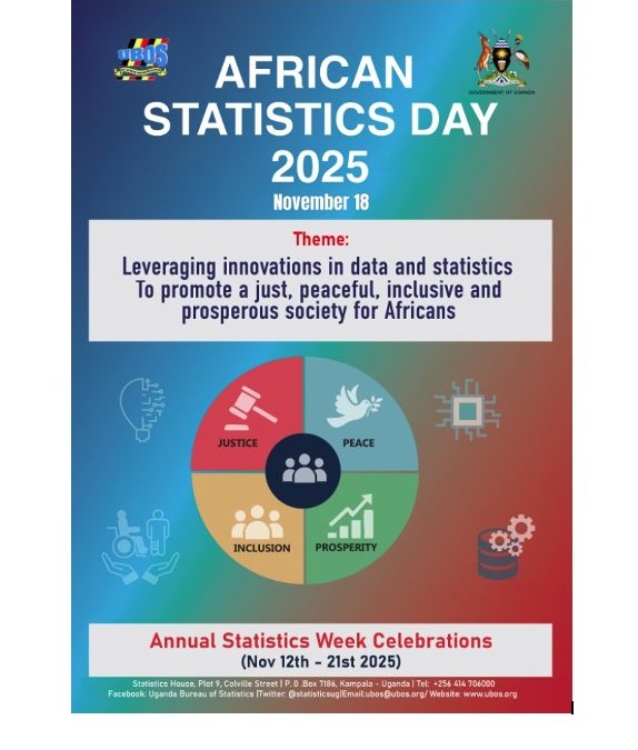 Uganda Bureau of Statistics (UBOS) will join other African National Statistical Offices (NSOs) in celebrating this year’s African Statistics Day on November 18th, 2025 under the Theme: “Leveraging Innovations in Data and Statistics to promote A just, Peaceful, Inclusive and Prosperous Society for Africans” … View the African Statistics Week, 12th to 21st November 2025 Event Programme
